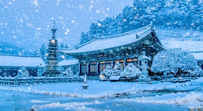 부안 내소사, 남양주 광릉수목원과 더불어 3대 전나무숲으로 널리 알려진 오대상 월정사 길은 부드러운 흙길이 평탄하게 1km 남짓 월정사 부근과 계곡을 끼고 조성되어 있는 산책길입니다. 오대산 월정사의 전나무숲은 자연을 즐기며 더위를 피하기 위한 여름철 좋은 여행지이지요. 하지만 드라마 도깨비의 촬영지로 유명해지면서 겨울 눈 덮힌 전나무 숲을 거니는 것도 아주 운치있어요. 여름에는 푸르름과 피톤치드를, 겨울에는 수려한 설경을 볼 수 있는 장소로 평창 가볼만한곳 필수 코스이지요.