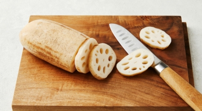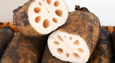 연근은 연꽃의 뿌리이며, 식감이 매우 아삭한 편입니다. 또한, 식이섬유가 매우 많기 때문에 저칼로리 메뉴에 활용하는 것을 추천합니다. 연근 성분 중 철분은 지혈효과가 있으므로 생즙을 내어 섭취하면 염증을 가라앉히는 소염작용이 뛰어나서 위궤양에도 좋고, 코피가 잦은 사람들에게 좋다고 하며 비타민C가 풍부하므로 스트레스에도 좋다고 합니다. 특히나 연근에서 나오는 비타민C는 전분이 많기 때문에 가열 시에도 파괴율이 낮아서 반찬으로 만들어 먹어도 좋습니다.