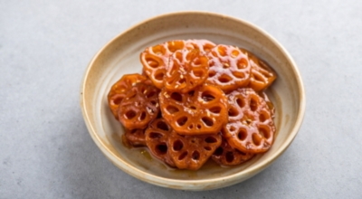 연근은 연꽃의 뿌리이며, 식감이 매우 아삭한 편입니다. 또한, 식이섬유가 매우 많기 때문에 저칼로리 메뉴에 활용하는 것을 추천합니다. 연근 성분 중 철분은 지혈효과가 있으므로 생즙을 내어 섭취하면 염증을 가라앉히는 소염작용이 뛰어나서 위궤양에도 좋고, 코피가 잦은 사람들에게 좋다고 하며 비타민C가 풍부하므로 스트레스에도 좋다고 합니다. 특히나 연근에서 나오는 비타민C는 전분이 많기 때문에 가열 시에도 파괴율이 낮아서 반찬으로 만들어 먹어도 좋습니다.