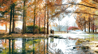 자동적으로 생기는 낙차를 이용한 분수들과 여러가지 나무들로 이루어진 숲 속 풍광이 위안을 자아내는 멋진 곳이지요. 낙강 물길 공원은 여름에는 나무 아래 부분에서 시원한 바람을 맞으며 휴식을 취할 수 있으며 가을에는 예쁘게 물든 단풍 풍광을 구경할 수 있어요.