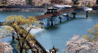 안동댐에 볼만한 멋진 다리가 있습니다. 4계절 주변의 풍경과 꽃과 나무들이 잘 어울려서 멋진 풍경을 만들어 내고 산책하기 좋으며 중간에 전망대와 정자가 있어서 힐링하기 좋습니다. 월영교는 안동민속촌과 월영공원을 연결하는 우리나라에서 가장 긴 목조 다리입니다. 2003년 개통되었다고 하며 길이 387m, 너비 3.6m로 국내에서는 가장 긴 목책 인도교이지요.